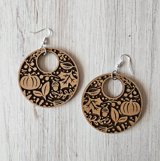 Autumn Leaves and Pumpkins Wooden Dangle Earrings