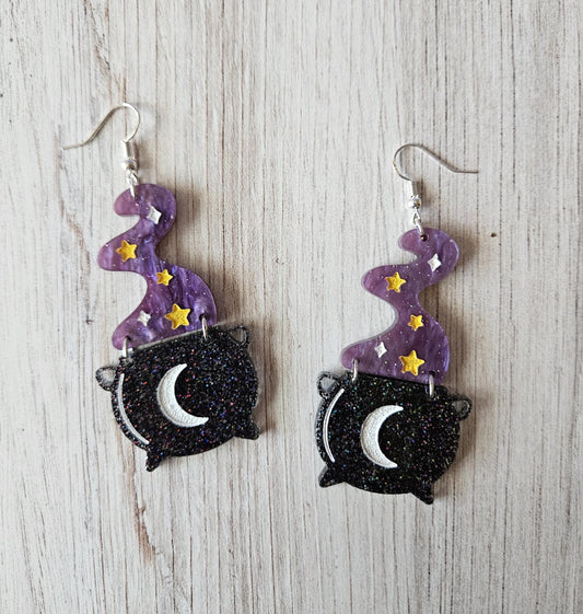 Purple Smoking Cauldron Acrylic Dangle Earrings