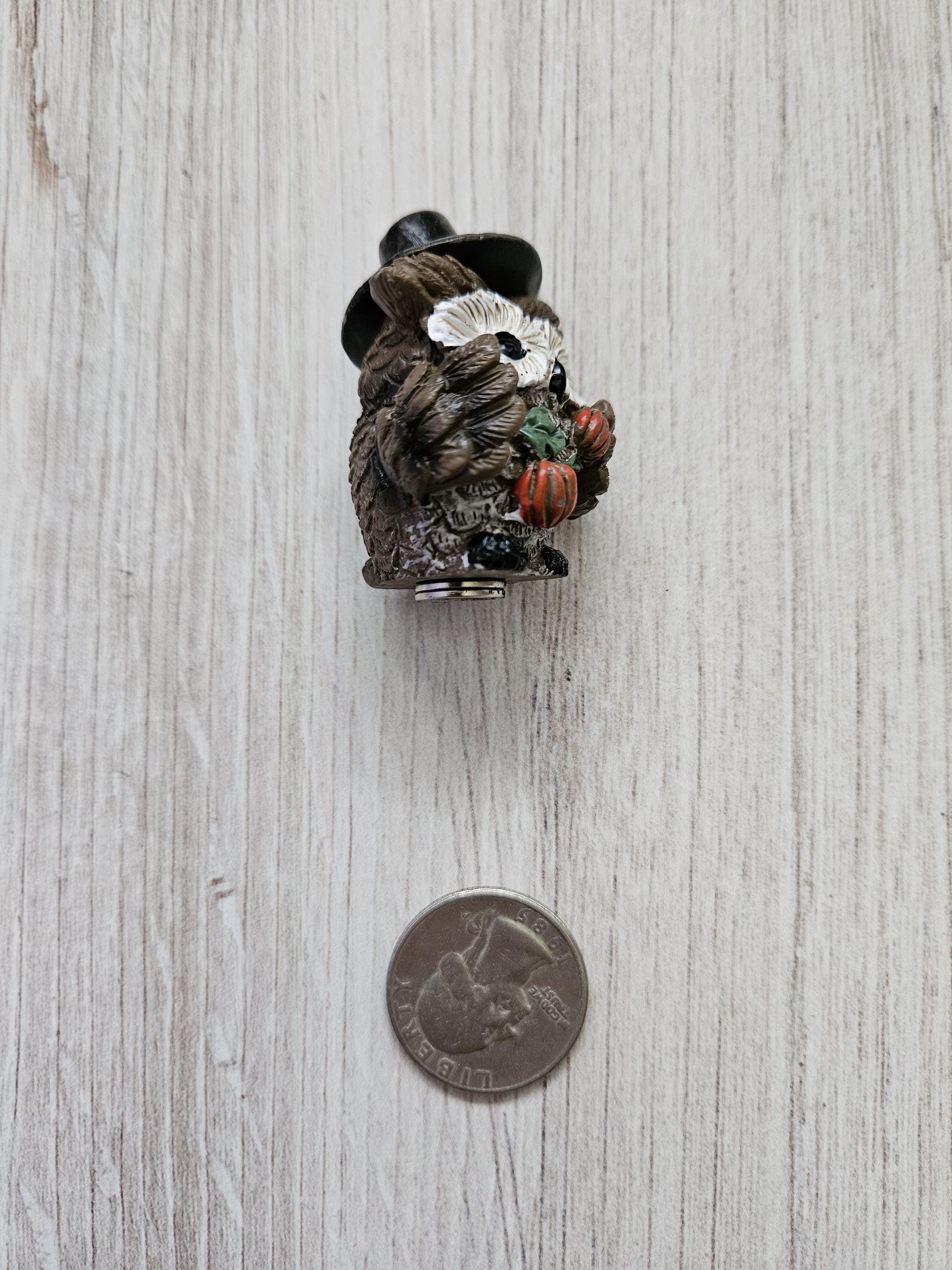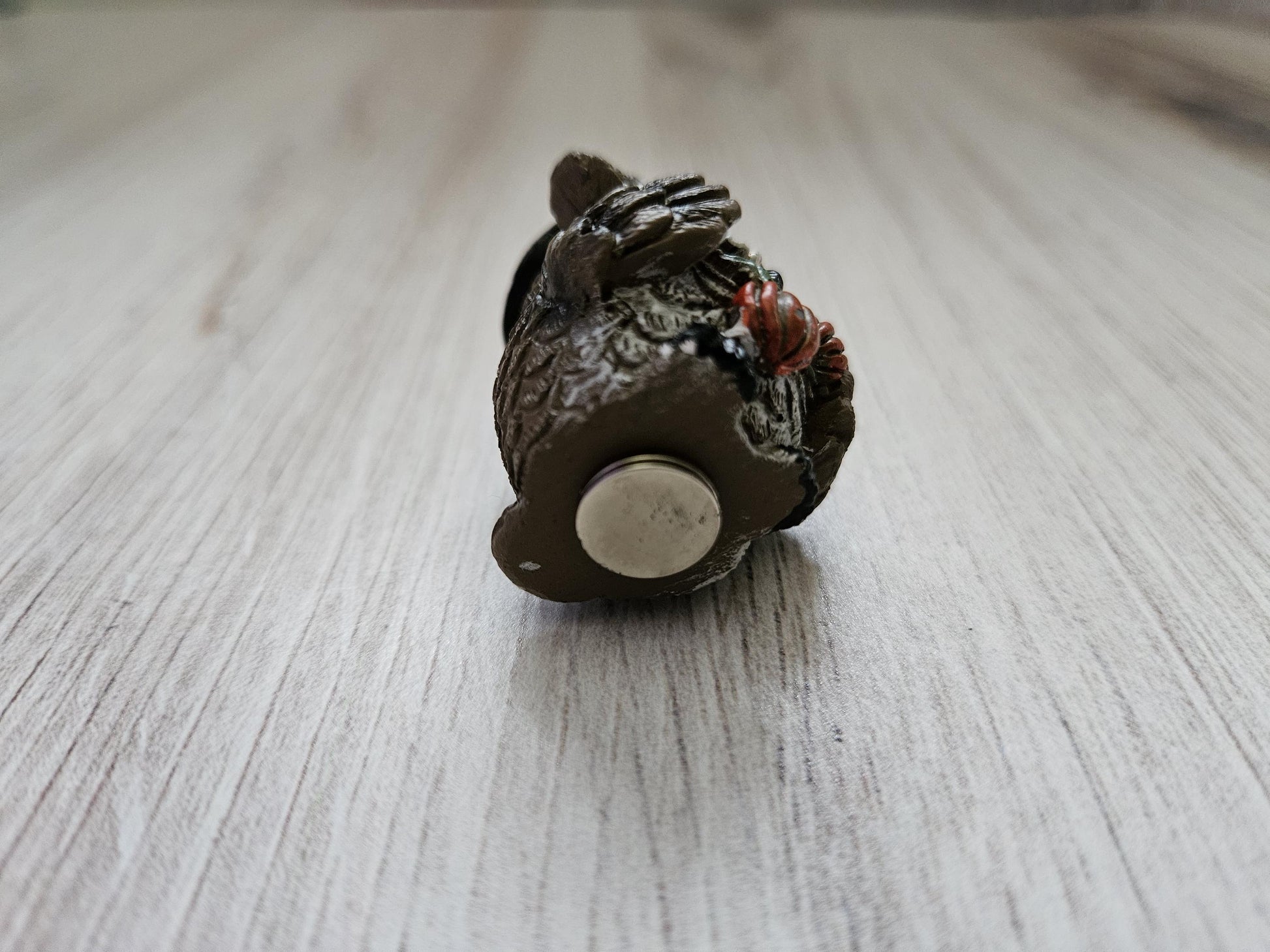 This ceramic cover minder is made using an adorable figure that I found and purchased at local shops, and then glued a set of magnets onto the bottom.
