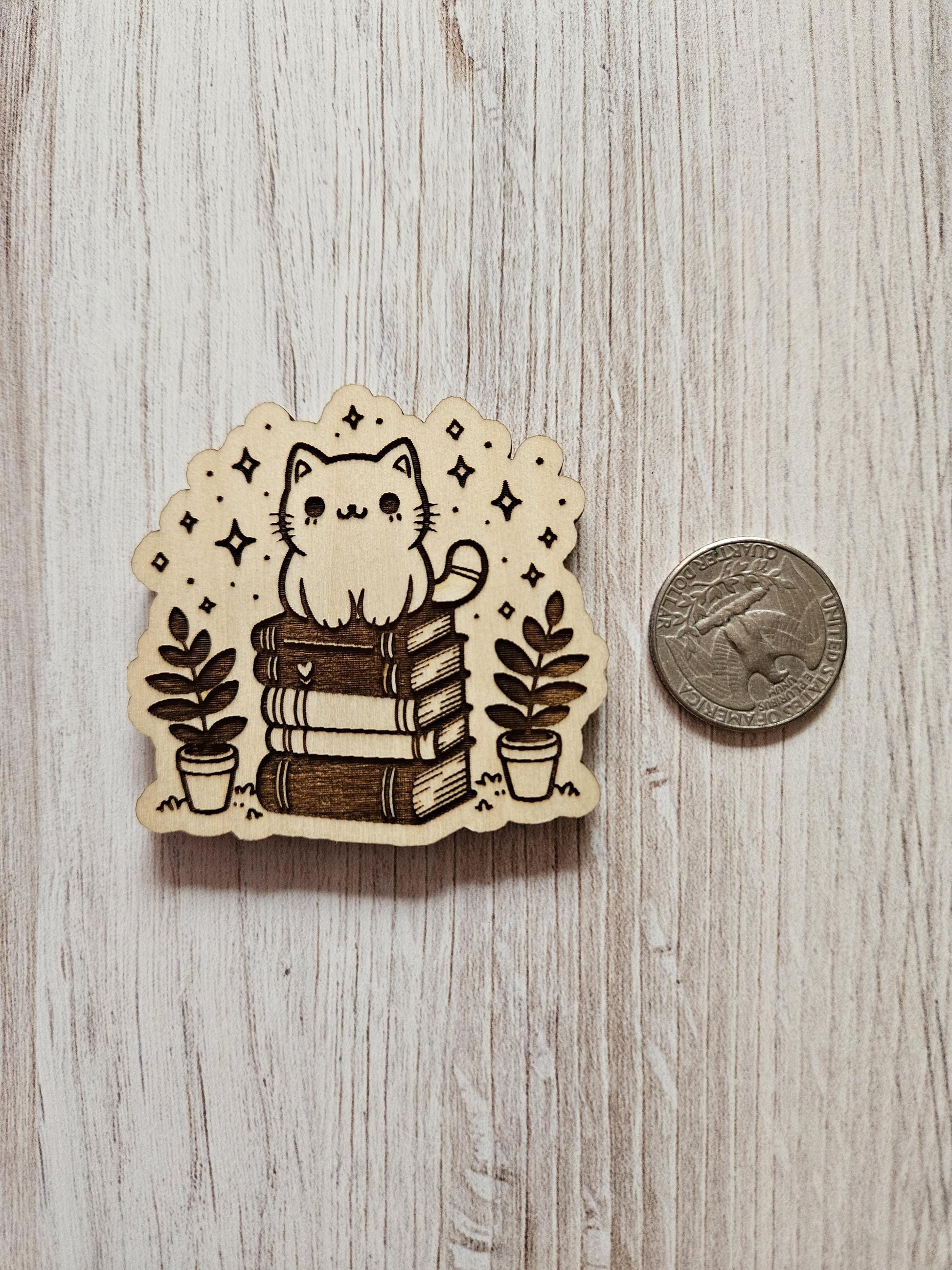 This cover minder is made using 100% light basswood plywood cut using a laser engraver and is then finished by hand.