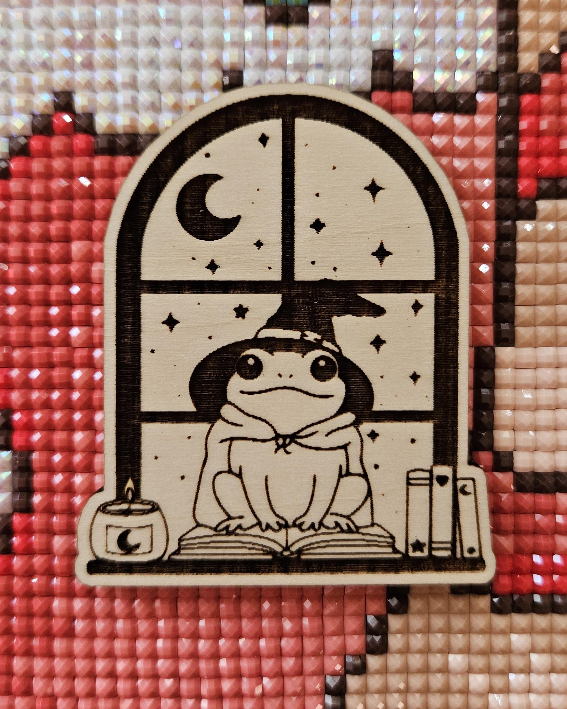 Cozy Frog Witch Window Cover Needle Minder